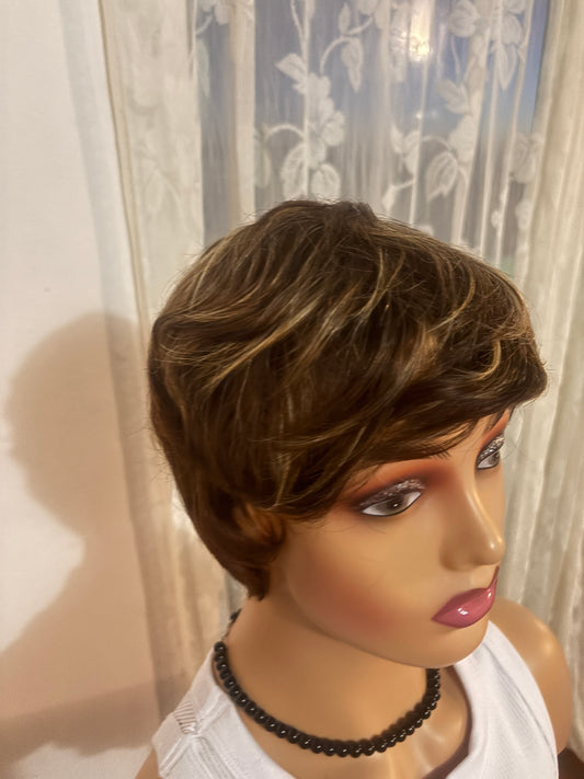 6 Inch Synthetic Hair Wig with Highlights – Short Natural Style